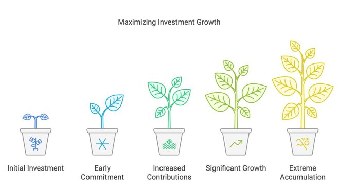 Time is the secret weapon. Even smaller contributions can grow larger than big contributions made later because compounding needs time to work its magic.